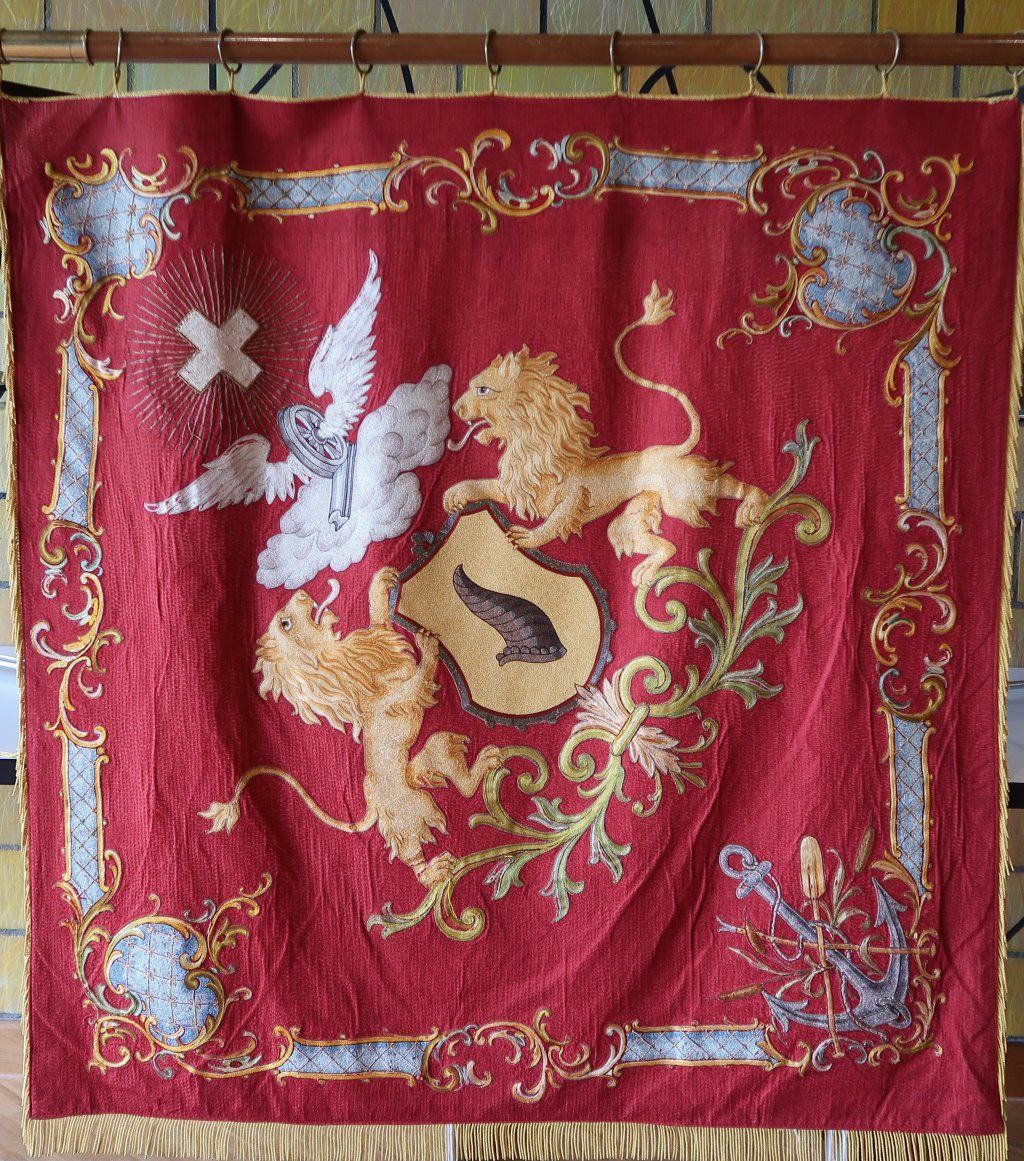 Die ursprüngliche Fahne des VSEA, bevor sie umgestickt wurde (Ansichtskarte von 1901)